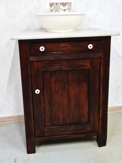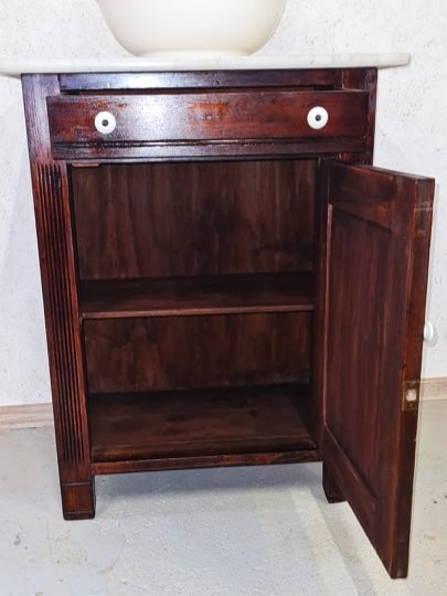 Zmywak po renowacji to piękny mebel. Drewno zostało starannie wyszlifowane i wypolerowane, odzyskując swój naturalny piękno i nadając mu ciepły, przyjazny blask. Spoiny zostały wzmocnione, a wszystkie okucia zostały wymienione, zapewniając, że zmywak jest trwały i solidny. zmywak został odnowiony i zabezpieczony, by zachować jego trwałość. zmywak jest teraz gotowy do użytku przez wiele lat i jest idealnym miejscem do odpoczynku czy też jako miejsce do postawienia kubka czy też książki.