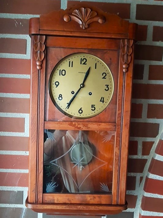 Zegar po renowacji to piękny mebel. Drewno zostało starannie wyszlifowane i wypolerowane, odzyskując swój naturalny piękno i nadając mu ciepły, przyjazny blask. Spoiny zostały wzmocnione, a wszystkie okucia zostały wymienione, zapewniając, że zegar jest trwały i solidny. zegar został odnowiony i zabezpieczony, by zachować jego trwałość. zegar jest teraz gotowy do użytku przez wiele lat i jest idealnym miejscem do odpoczynku czy też jako miejsce do postawienia kubka czy też książki.