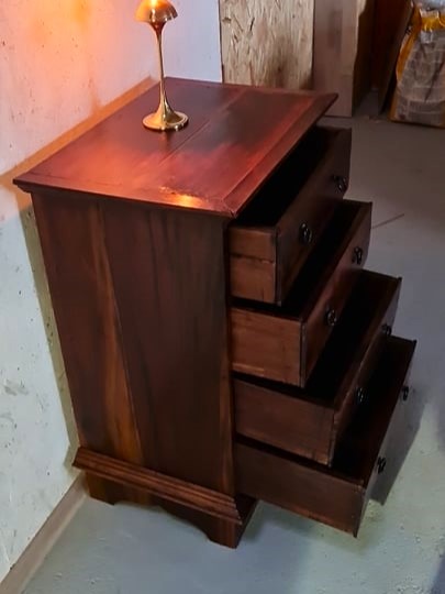 Szafka po renowacji to piękny mebel. Drewno zostało starannie wyszlifowane i wypolerowane, odzyskując swój naturalny piękno i nadając mu ciepły, przyjazny blask. Spoiny zostały wzmocnione, a wszystkie okucia zostały wymienione, zapewniając, że szafka jest trwały i solidny. szafka został odnowiony i zabezpieczony, by zachować jego trwałość. szafka jest teraz gotowy do użytku przez wiele lat i jest idealnym miejscem do odpoczynku czy też jako miejsce do postawienia kubka czy też książki.