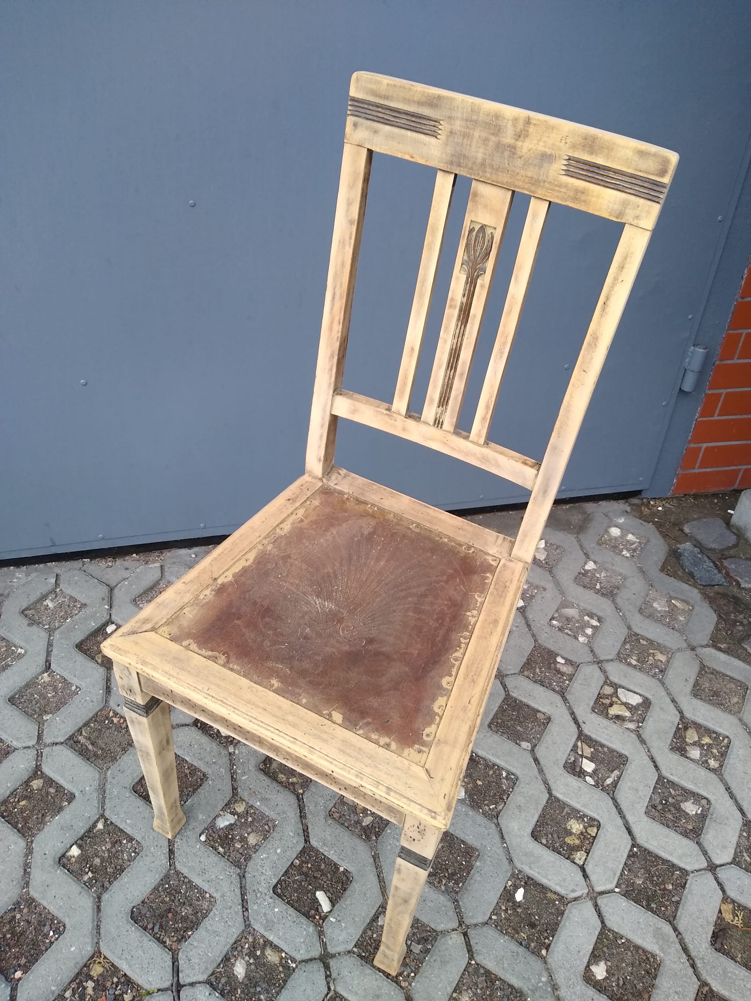 Krzesło po renowacji to prawdziwe dzieło sztuki. Ramie drewniane zostało starannie wyszlifowane i wypolerowane, odzyskując swój naturalny piękno i nadając mu ciepły, przyjazny blask. Spoiny zostały wzmocnione, a wszystkie okucia zostały wymienione, zapewniając, że krzesło jest trwałe i solidne. Tapicerka została profesjonalnie wyczyszczona. Krzesło jest teraz gotowe do użytku przez wiele lat.